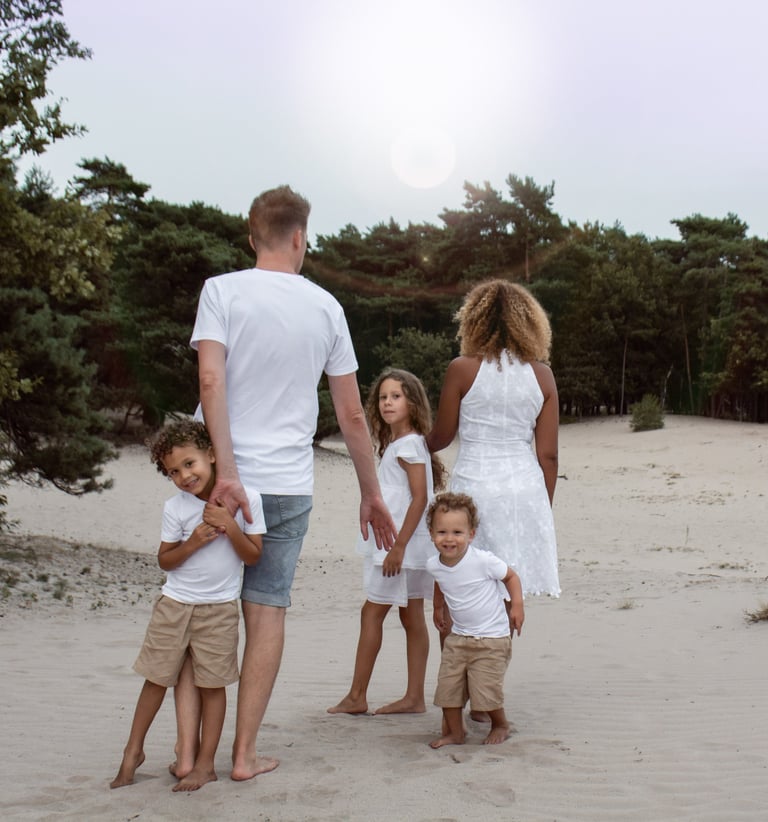 Kies voor zoveel mogelijk afgestemde tinten wanneer je met je gezin op de foto gaat. Kies voor zoveel mogelijk zachte tinten en effen kleuren die niet teveel afleiden. Sieraden kunnen reflecteren. Teveel sieraden of andere accessoires maakt de foto druk